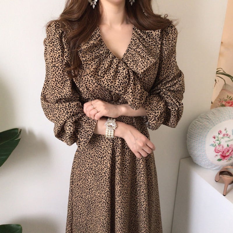 新品 レオパードロングスカート Vネック ⦿韓国 オルチャン K-pop アイドル ジャケット スーツ ワンピース カーディガン ニット フーディー トレーナー キャミソール スカート シャツ ブラウス 5A0923515 | K clothig adult