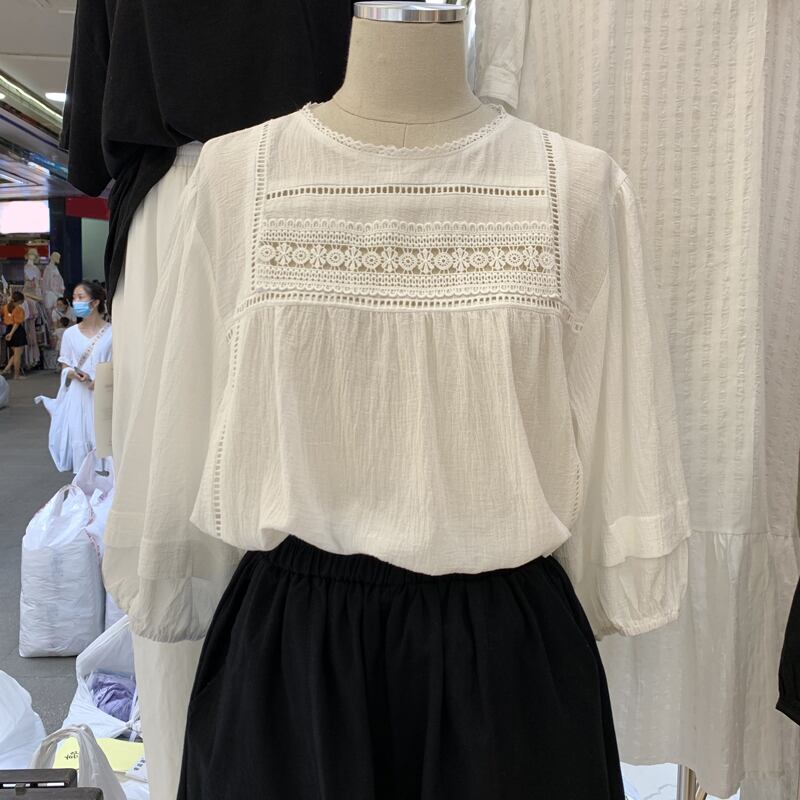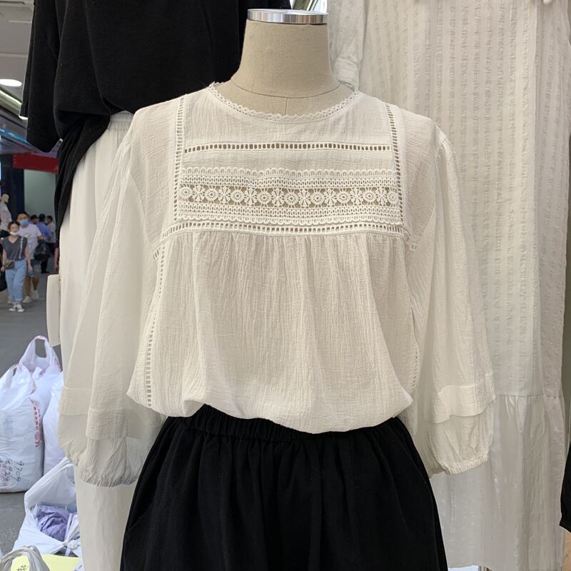 新品 サマースリーブルーズシャツブラウス コットン レース 夏物 レースアップ ⦿韓国 オルチャン K-pop アイドル ジャケット スーツ ワンピース カーディガン ニット フーディー トレーナー キャミソール スカート シャツ ブラウス 5B0485192
