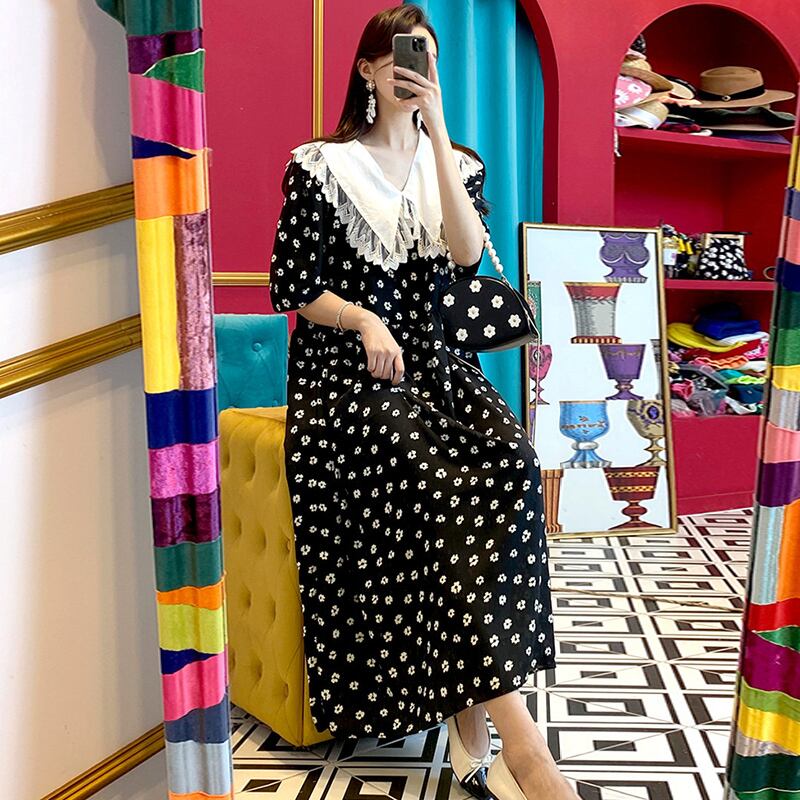 新品 スタンダードレース花柄♥カワイイ♥シフォンロングスカート レトロ ステッチ ⦿韓国 オルチャン K-pop アイドル ジャケット スーツ ワンピース カーディガン ニット フーディー トレーナー キャミソール スカート シャツ ブラウス 5A4512886