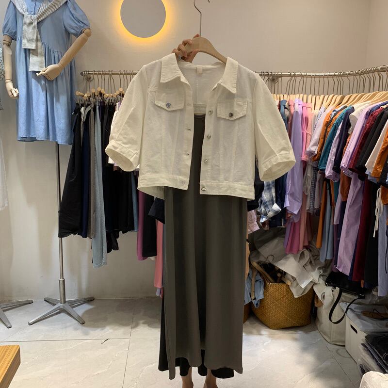 新品 ソリッド カラースリーブショートジャケット ソリッドカラー ⦿韓国 オルチャン K-pop アイドル ジャケット スーツ ワンピース カーディガン ニット フーディー トレーナー キャミソール スカート シャツ ブラウス 5B8104619