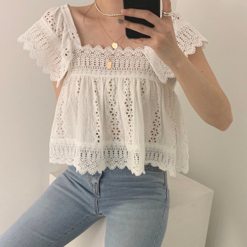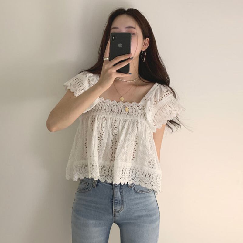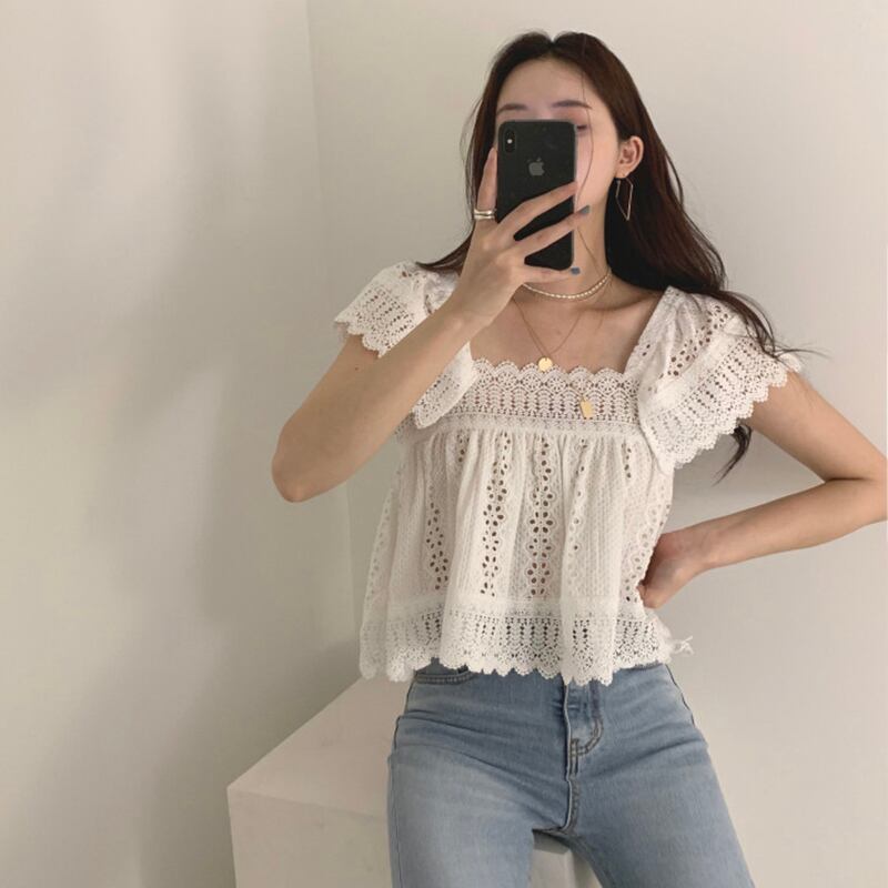 新品 スタンダードレース花柄ホルターショートシャツブラウス レトロ フラワーデザイン スクウェア ⦿韓国 オルチャン K-pop アイドル ジャケット スーツ ワンピース カーディガン ニット フーディー トレーナー キャミソール スカート シャツ ブラウス 5A5680158 | K clothig adult