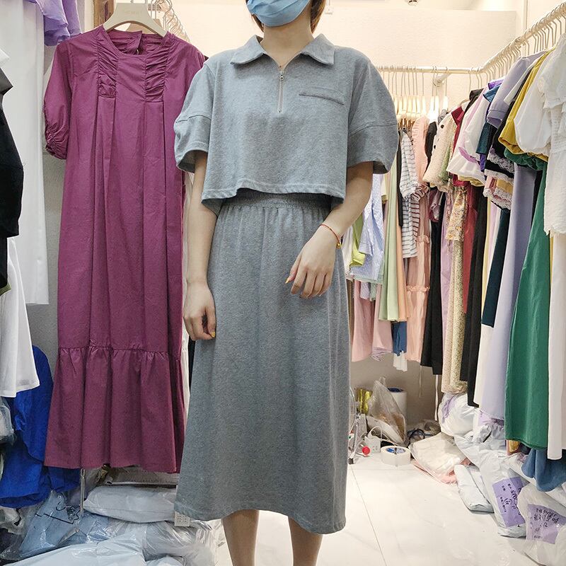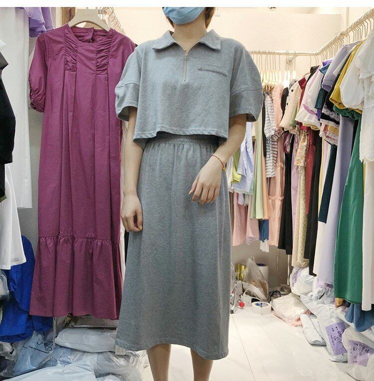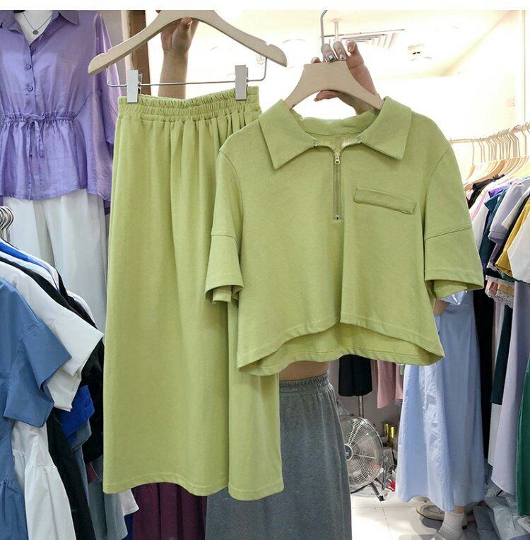 新品 サマーショートトップス ソリッド ストレッチ★スカート ツーピース セット エラスティック 伸縮 夏物 ソリッドカラー ⦿韓国 オルチャン K-pop アイドル ジャケット スーツ ワンピース カーディガン ニット フーディー トレーナー キャミソール スカート シャツ ブラウス 5B6110940