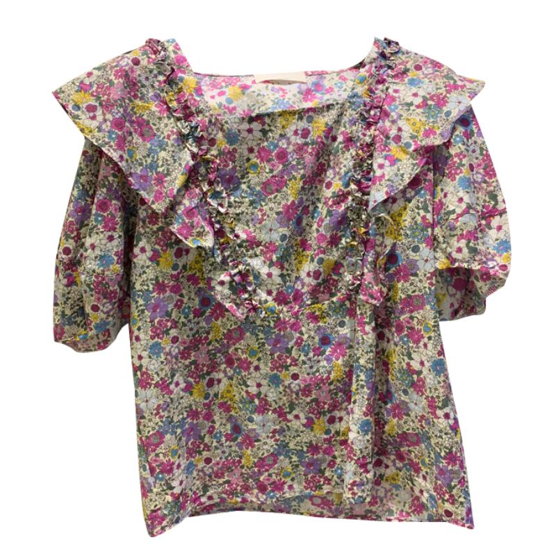 新品 サマー花柄スリーブブラウス コットン 夏物 スクウェア ステッチ ⦿韓国 オルチャン K-pop アイドル ジャケット スーツ ワンピース カーディガン ニット フーディー トレーナー キャミソール スカート シャツ ブラウス 5B6529956