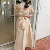 新品 花柄スリーブシャツブラウスリボンスカート ⦿韓国 オルチャン K-pop アイドル ジャケット スーツ ワンピース カーディガン ニット フーディー トレーナー キャミソール スカート シャツ ブラウス 5A6776868