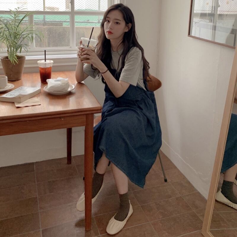 色:グレーT,デニムスカート