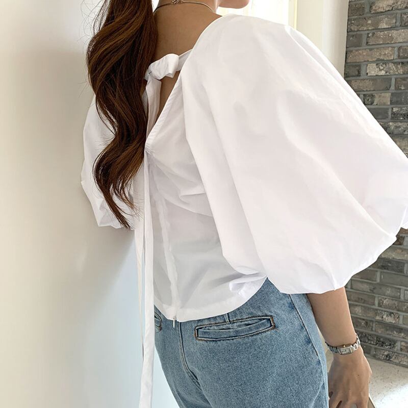 新品 Vネックバックバンドスリーブシャツブラウス ⦿韓国 オルチャン K-pop アイドル ジャケット スーツ ワンピース カーディガン ニット フーディー トレーナー キャミソール スカート シャツ ブラウス 5A1712305 | K clothig adult