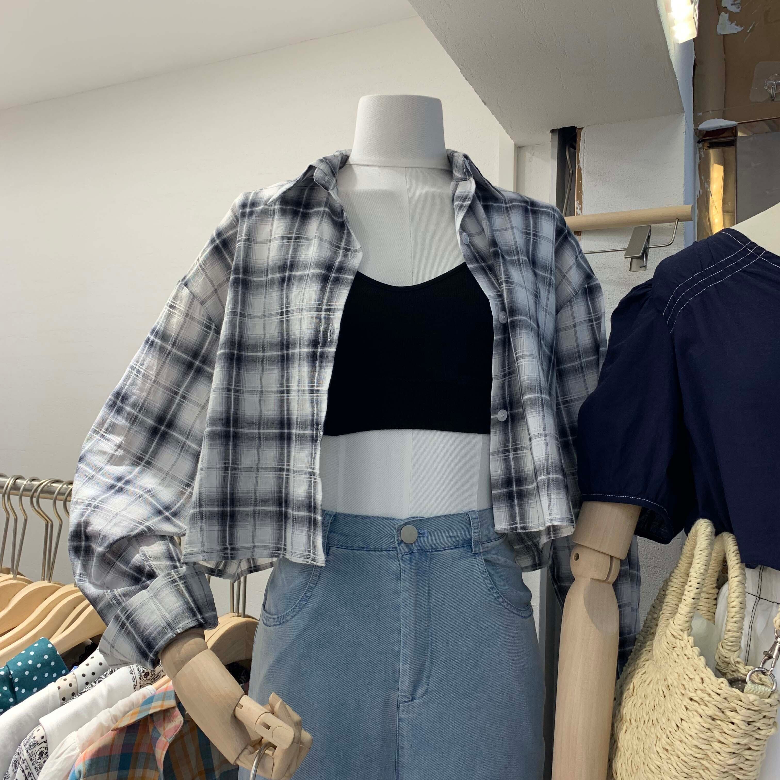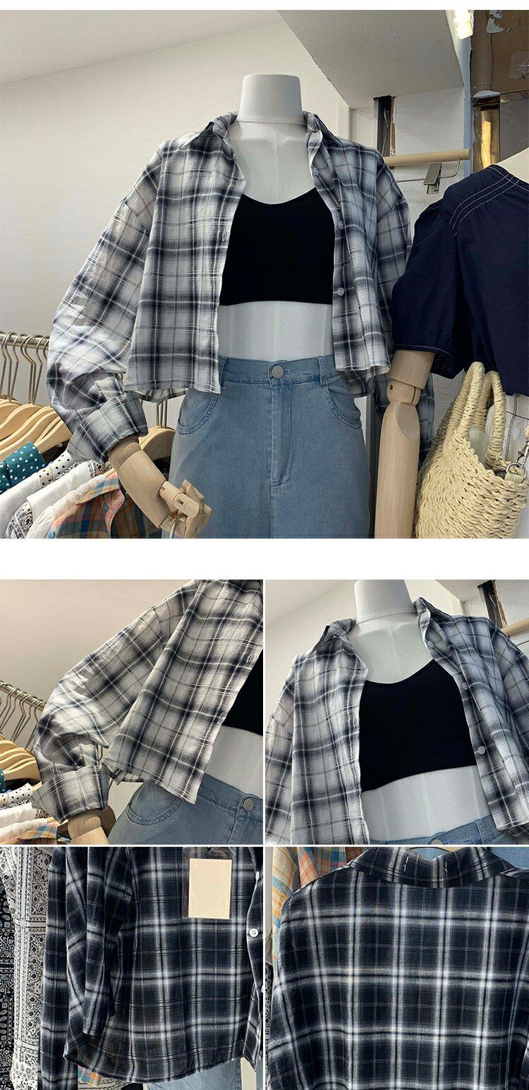 新品 ♥カワイイ♥チェック柄ショートシャツブラウス ロング コットン ⦿韓国 オルチャン K-pop アイドル ジャケット スーツ ワンピース カーディガン ニット フーディー トレーナー キャミソール スカート シャツ ブラウス 5B7952086