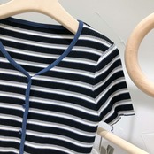 新品 白カラーVネックストライプショートコート ホワイト スウィート ピュア ⦿韓国 オルチャン K-pop アイドル ジャケット スーツ ワンピース カーディガン ニット フーディー トレーナー キャミソール スカート シャツ ブラウス 5B6080019