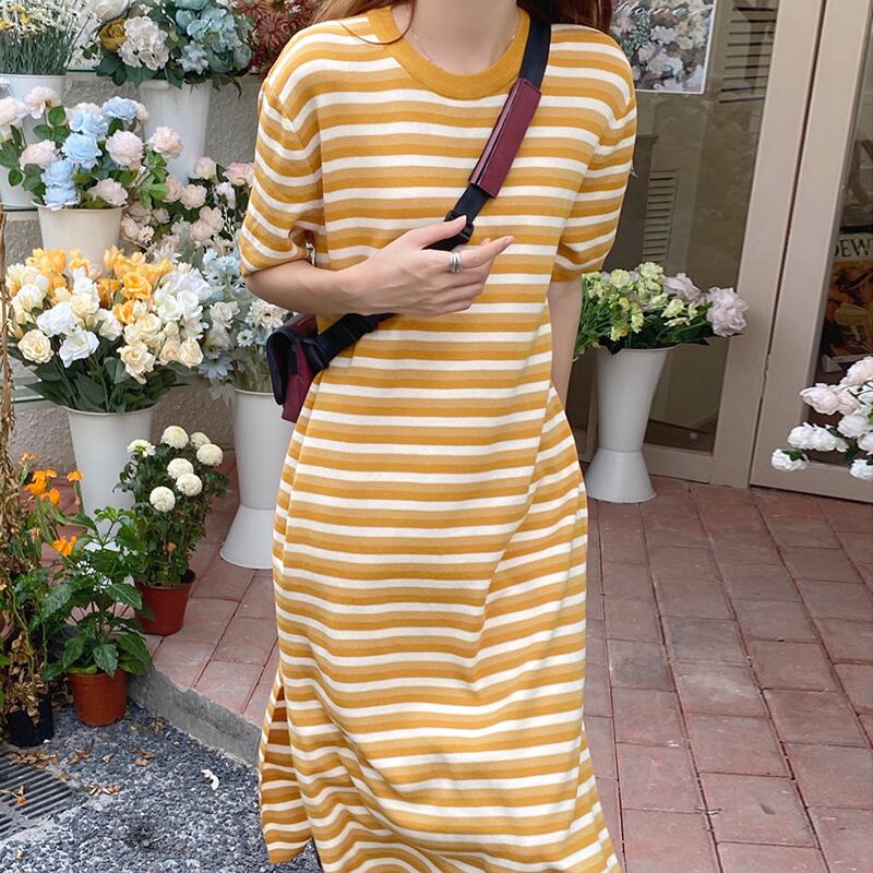 新品 スタンダードカラーストライプ白ラウンドネックカジュアルサイドスリットニットロングスカート ホワイト レトロ ⦿韓国 オルチャン K-pop アイドル ジャケット スーツ ワンピース カーディガン ニット フーディー トレーナー キャミソール スカート シャツ ブラウス 5A7915620 | K clothig adult