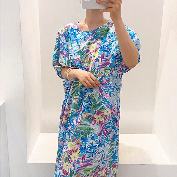 新品 ♡ラウンドネック花柄ダブルポケットカジュアルスリーブロングスカート ⦿韓国 オルチャン K-pop アイドル ジャケット スーツ ワンピース カーディガン ニット フーディー トレーナー キャミソール スカート シャツ ブラウス 5A6624005