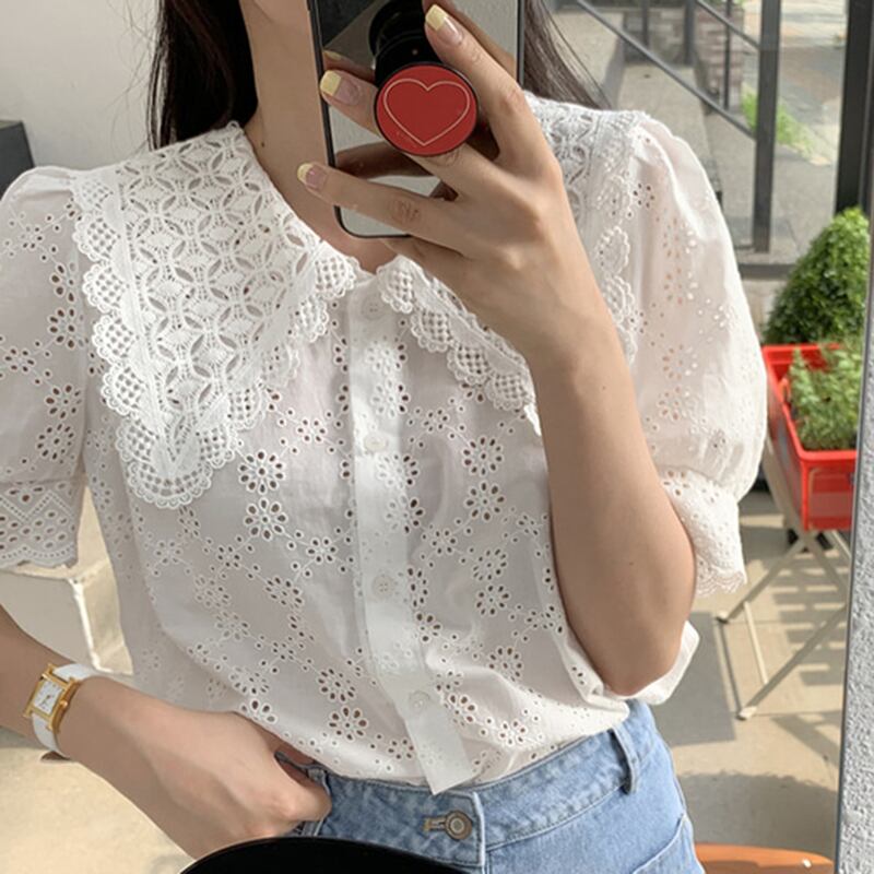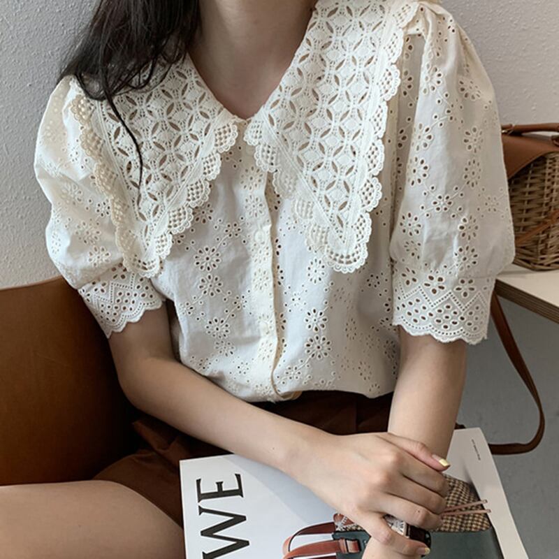 新品 スタンダードレース刺繍シングルブレストスリーブシャツブラウス大人女子☆ レトロ ⦿韓国 オルチャン K-pop アイドル ジャケット スーツ ワンピース カーディガン ニット フーディー トレーナー キャミソール スカート シャツ ブラウス 5A5615510
