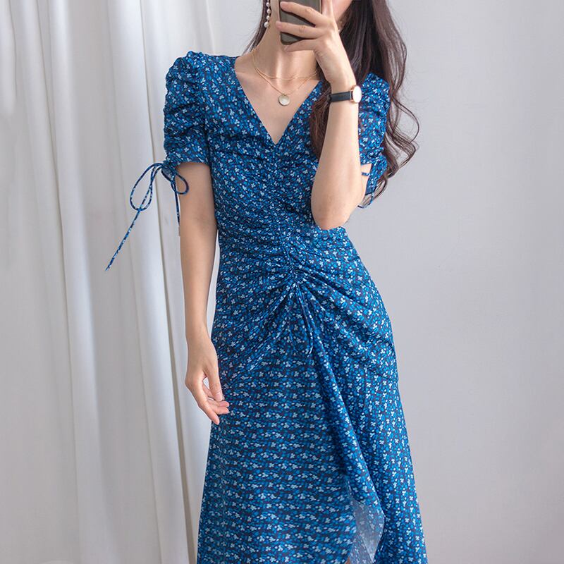 新品 ♡Vネック♥カワイイ♥プリーツレーススリーブ花柄ロングスカート ⦿韓国 オルチャン K-pop アイドル ジャケット スーツ ワンピース カーディガン ニット フーディー トレーナー キャミソール スカート シャツ ブラウス 5A0692800 | K clothig adult
