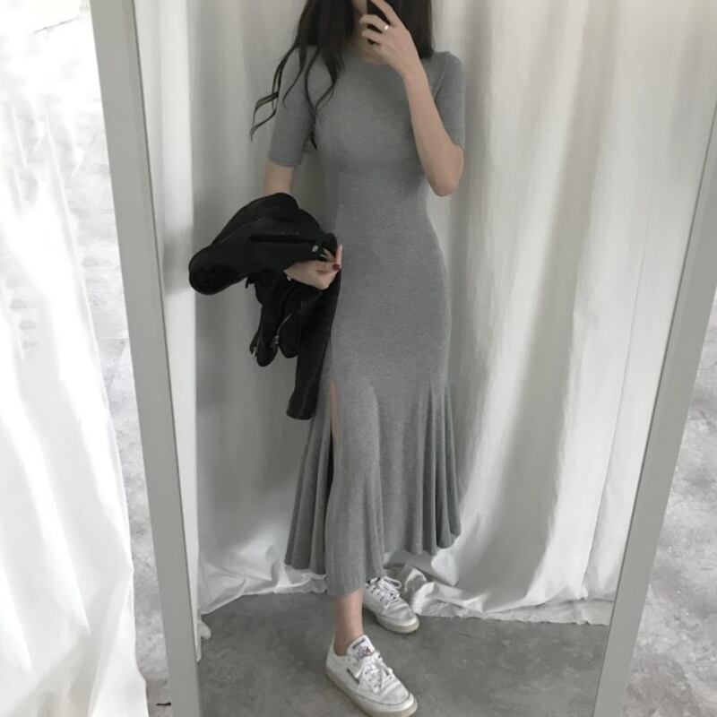 新品 ラウンドネックスリムロングサイド半袖スリーブスカート ショート ⦿韓国 オルチャン K-pop アイドル ジャケット スーツ ワンピース カーディガン ニット フーディー トレーナー キャミソール スカート シャツ ブラウス 5A3135560