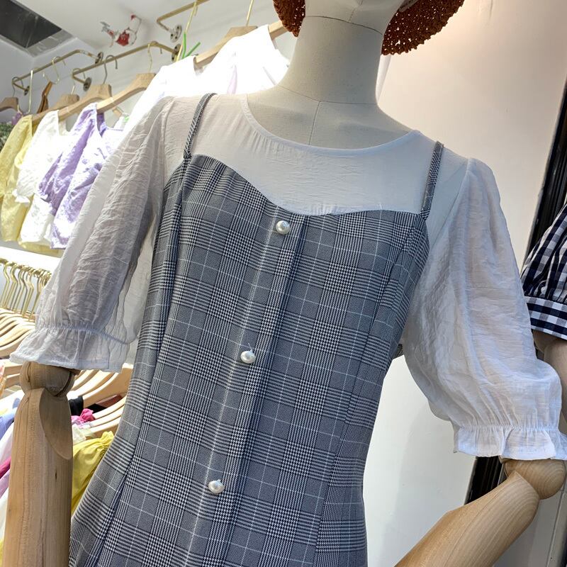 新品 サマーソリッド カラースリーブラウンドネックトップス チェック柄 夏物 ソリッドカラー ステッチ ⦿韓国 オルチャン K-pop アイドル ジャケット スーツ ワンピース カーディガン ニット フーディー トレーナー キャミソール スカート シャツ ブラウス 5B8427104