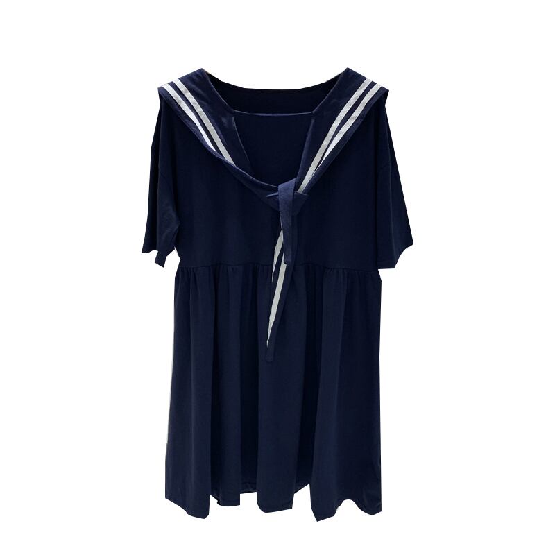 新品 ♡ネイビー半袖スリーブミディスカート ショート ステッチ ⦿韓国 オルチャン K-pop アイドル ジャケット スーツ ワンピース カーディガン ニット フーディー トレーナー キャミソール スカート シャツ ブラウス 5B0449349