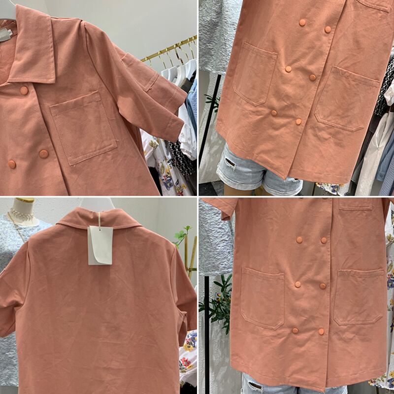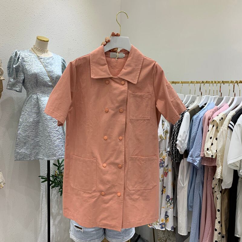 新品 ルーズオータム半袖スリーブダブルブレストミディドレス ワンピース ショート 秋物 ピュア ⦿韓国 オルチャン K-pop アイドル ジャケット スーツ ワンピース カーディガン ニット フーディー トレーナー キャミソール スカート シャツ ブラウス 5B7630959