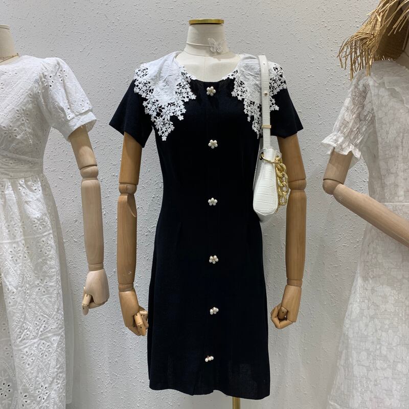 新品 刺繍パールボタンニットミディスカート 真珠 ステッチ ⦿韓国 オルチャン K-pop アイドル ジャケット スーツ ワンピース カーディガン ニット フーディー トレーナー キャミソール スカート シャツ ブラウス 5B9007726