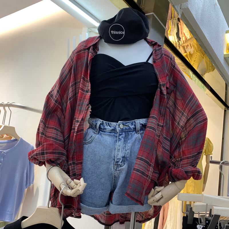新品 ♥カワイイ♥チェック柄ブラウス ロング コットン ⦿韓国 オルチャン K-pop アイドル ジャケット スーツ ワンピース カーディガン ニット フーディー トレーナー キャミソール スカート シャツ ブラウス 5B6440184