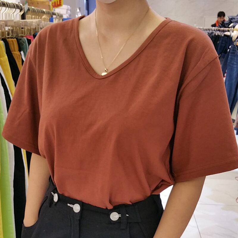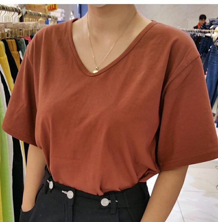 新品 ルーズVネックTシャツ カジュアルベーシックトップス ⦿韓国 オルチャン K-pop アイドル ジャケット スーツ ワンピース カーディガン ニット フーディー トレーナー キャミソール スカート シャツ ブラウス 5B1487958 | K clothig adult