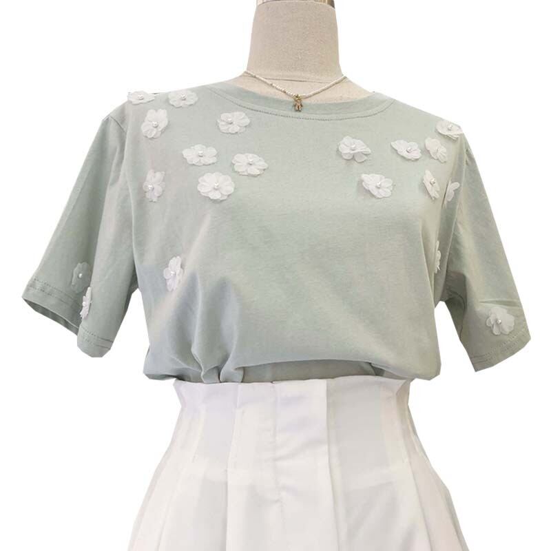 新品 サマーカラー花柄♥カワイイ♥プルオーバー Tシャツ トップス スウィート 夏物 ピュア フラワーデザイン ⦿韓国 オルチャン K-pop アイドル ジャケット スーツ ワンピース カーディガン ニット フーディー トレーナー キャミソール スカート シャツ ブラウス 5B5580357