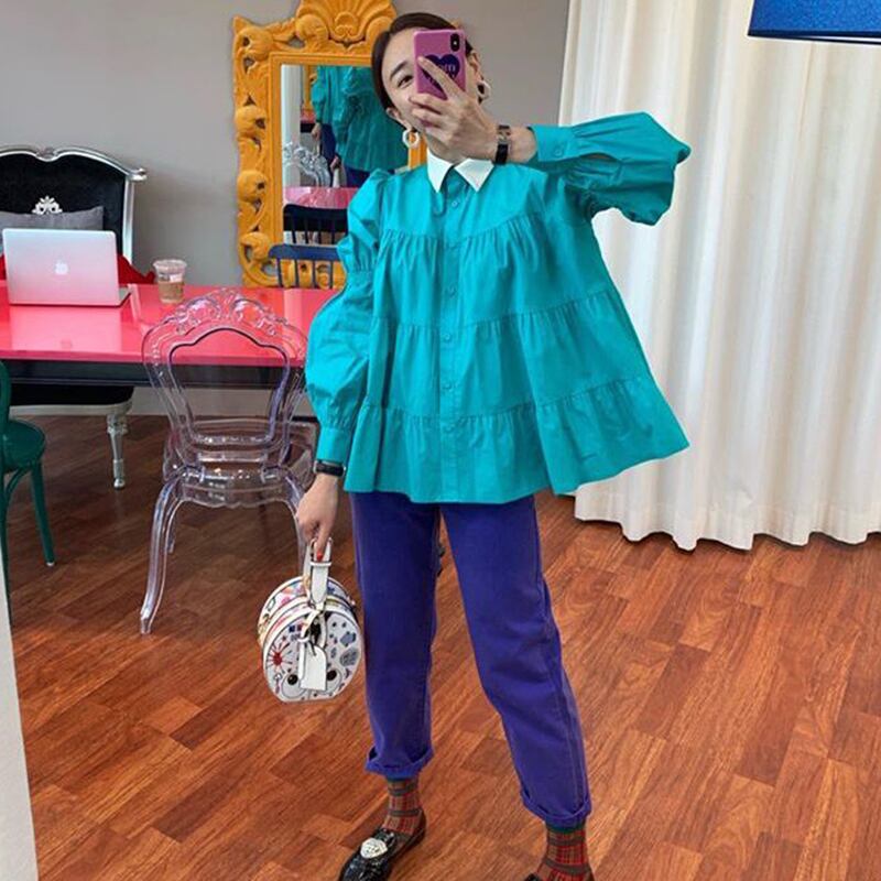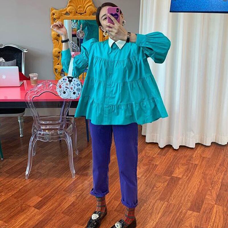 新品 カラーシングルブレストスリーブシャツブラウス ステッチ ⦿韓国 オルチャン K-pop アイドル ジャケット スーツ ワンピース カーディガン ニット フーディー トレーナー キャミソール スカート シャツ ブラウス 5A7666784