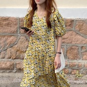 新品 スタンダードイエロー花柄Vネック膝丈 ひざ丈ロングスリーブシフォン レトロ ⦿韓国 オルチャン K-pop アイドル ジャケット スーツ ワンピース カーディガン ニット フーディー トレーナー キャミソール スカート シャツ ブラウス 5A5544151