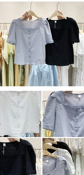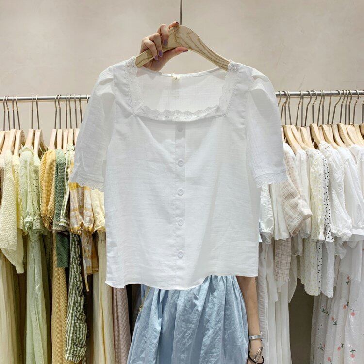 新品 レース半袖スリーブシャツブラウスカーディガン ショート スクウェア ステッチ ⦿韓国 オルチャン K-pop アイドル ジャケット スーツ ワンピース カーディガン ニット フーディー トレーナー キャミソール スカート シャツ ブラウス 5B4473000