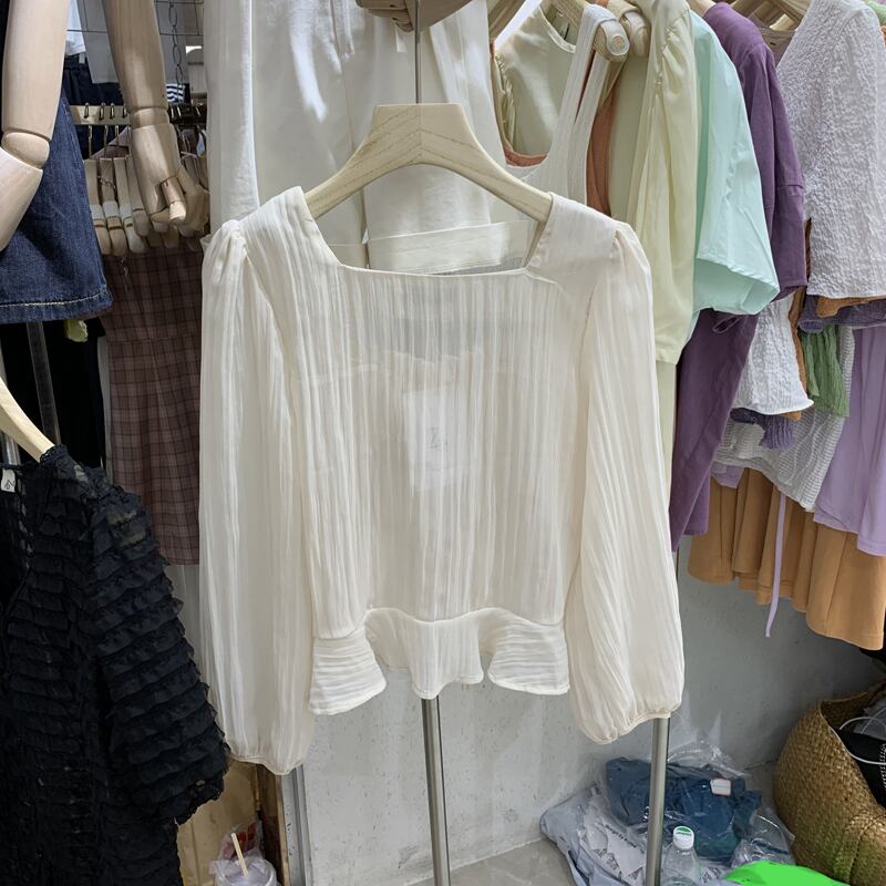 新品 リボンシャツブラウス コットン スウィート スクウェア ⦿韓国 オルチャン K-pop アイドル ジャケット スーツ ワンピース カーディガン ニット フーディー トレーナー キャミソール スカート シャツ ブラウス 5B6392209
