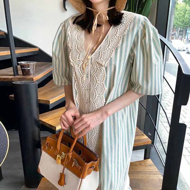 新品 ♡♥カワイイ♥Vネックレースカジュアルストライプ大人女子☆ ステッチ ⦿韓国 オルチャン K-pop アイドル ジャケット スーツ ワンピース カーディガン ニット フーディー トレーナー キャミソール スカート シャツ ブラウス 5A3127538