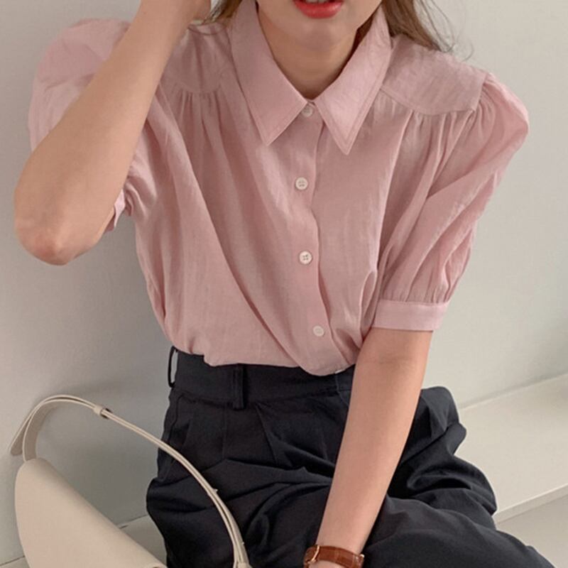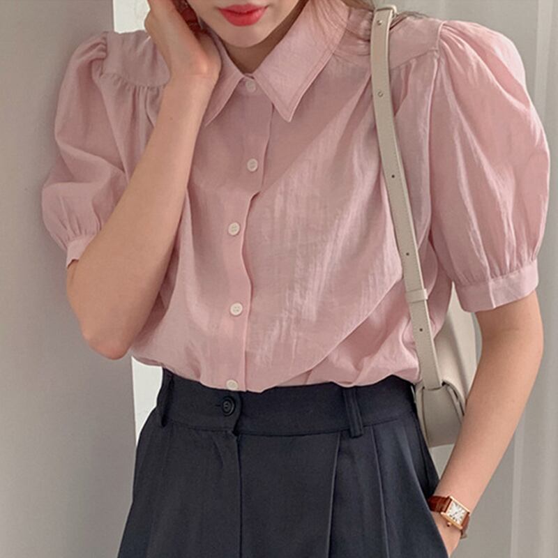 新品 スタンダード♥カワイイ♥カジュアルプリーツスリーブシャツブラウストップス ピンク レトロ ⦿韓国 オルチャン K-pop アイドル ジャケット スーツ ワンピース カーディガン ニット フーディー トレーナー キャミソール スカート シャツ ブラウス 5A6303717