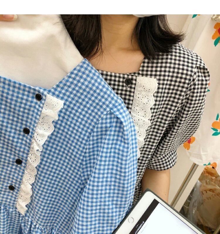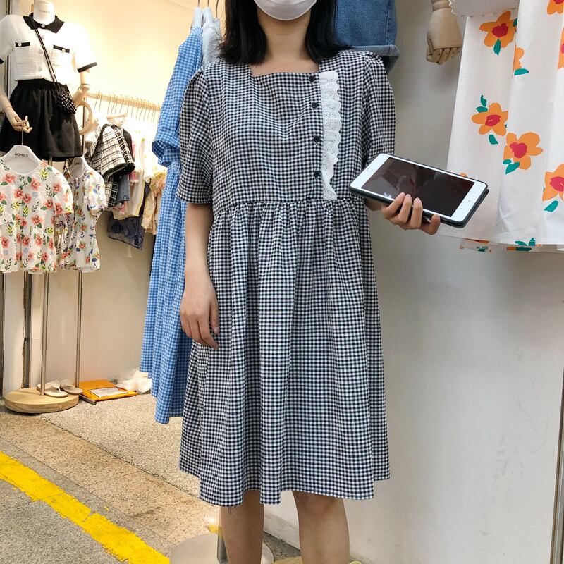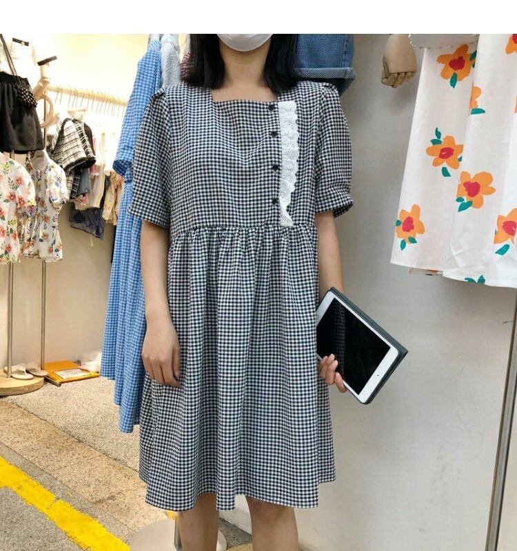 新品 サマーチェック柄ルーズドレス ワンピース スウィート 夏物 ピュア ⦿韓国 オルチャン K-pop アイドル ジャケット スーツ ワンピース カーディガン ニット フーディー トレーナー キャミソール スカート シャツ ブラウス 5B6902494
