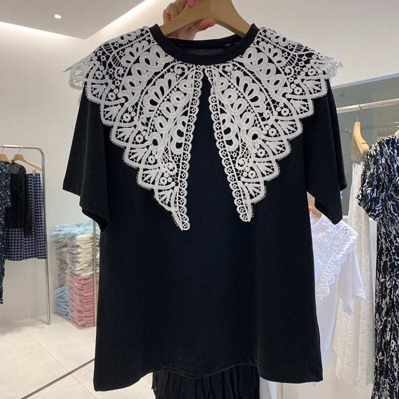 新品 サマーレース半袖スリーブTシャツ トップス ショート スウィート 夏物 ステッチ ⦿韓国 オルチャン K-pop アイドル ジャケット スーツ ワンピース カーディガン ニット フーディー トレーナー キャミソール スカート シャツ ブラウス 5B8095939