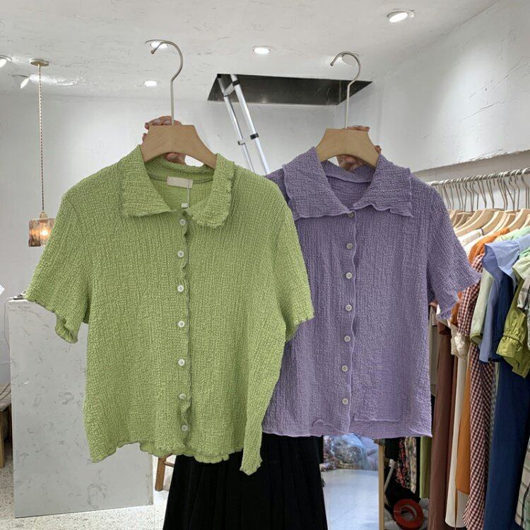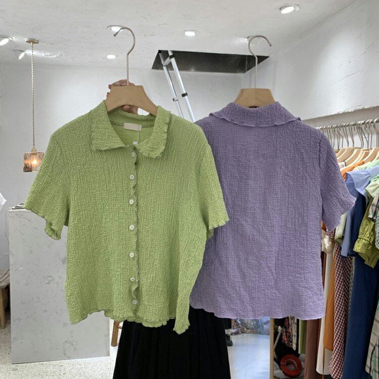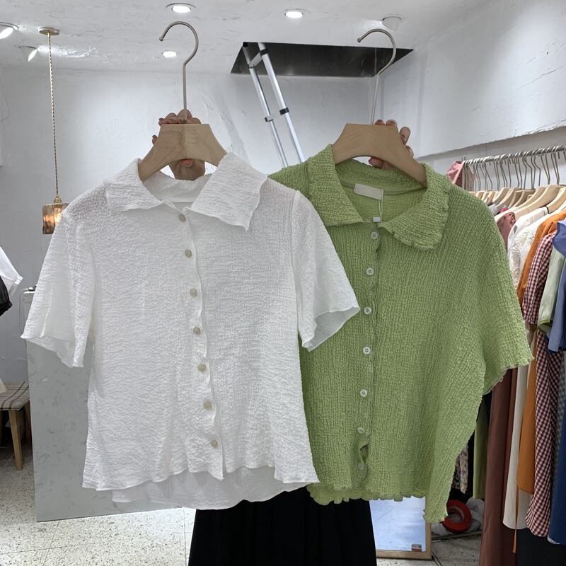 新品 プリーツシャツブラウス コットン ⦿韓国 オルチャン K-pop アイドル ジャケット スーツ ワンピース カーディガン ニット フーディー トレーナー キャミソール スカート シャツ ブラウス 5B1871049