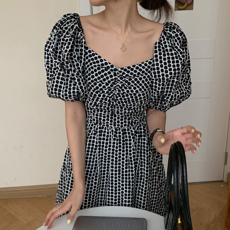 新品 スタンダード♡プリーツホルタースリーブ水玉 レトロ スクウェア ⦿韓国 オルチャン K-pop アイドル ジャケット スーツ ワンピース カーディガン ニット フーディー トレーナー キャミソール スカート シャツ ブラウス 5A6486618