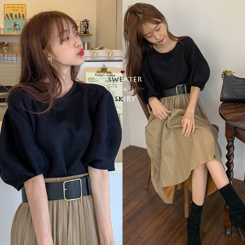 新品 ラウンドネックスリーブセーター Tシャツ プリーツスカート 大人女子☆ ⦿韓国 オルチャン K-pop アイドル ジャケット スーツ ワンピース カーディガン ニット フーディー トレーナー キャミソール スカート シャツ ブラウス 5A8091039 | K clothig adult