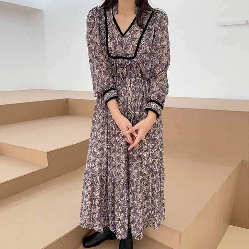 新品 スタンダード花柄Vネックカラーライン♥カワイイ♥ロングスリーブ レトロ ⦿韓国 オルチャン K-pop アイドル ジャケット スーツ ワンピース カーディガン ニット フーディー トレーナー キャミソール スカート シャツ ブラウス 5A6776667
