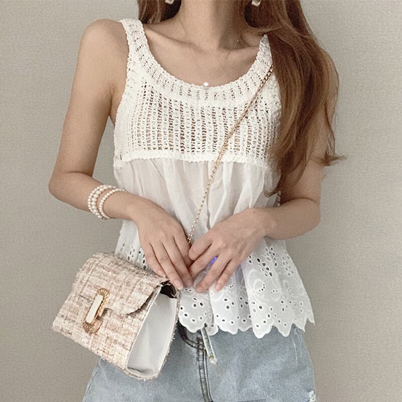 新品 スタンダードニットチェーン 刺繍♥カワイイ♥キャミソール レトロ ステッチ ⦿韓国 オルチャン K-pop アイドル ジャケット スーツ ワンピース カーディガン ニット フーディー トレーナー キャミソール スカート シャツ ブラウス 5A4561140