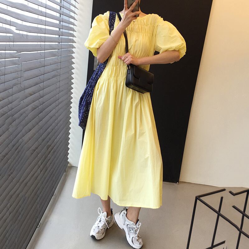 新品 スタンダードラウンドネックプリーツ★♥カワイイ♥スリーブロングスカート レトロ エレガント ⦿韓国 オルチャン K-pop アイドル ジャケット スーツ ワンピース カーディガン ニット フーディー トレーナー キャミソール スカート シャツ ブラウス 5A3318649