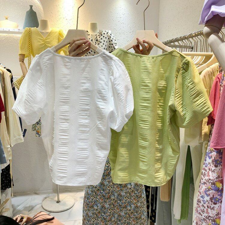 新品 サマースリーブプルオーバー プリーツTシャツ トップス 夏物 ピュア スクウェア ⦿韓国 オルチャン K-pop アイドル ジャケット スーツ ワンピース カーディガン ニット フーディー トレーナー キャミソール スカート シャツ ブラウス 5B0345373 | K clothig adult