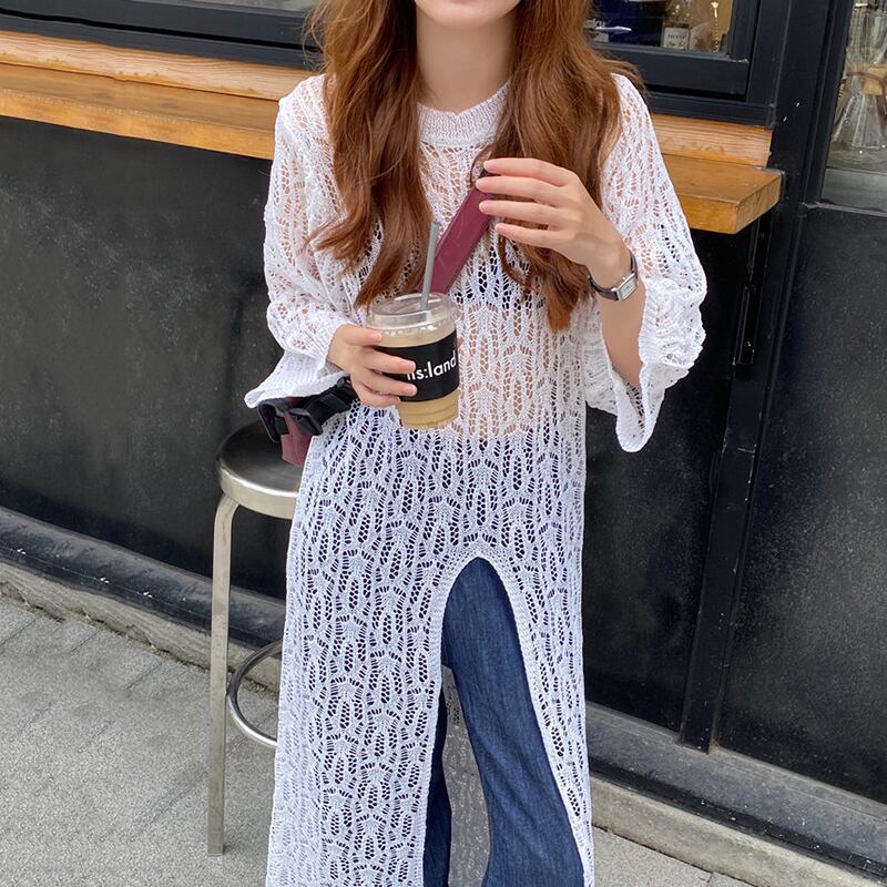 新品 ♡ラウンドネックサイドスリットロングセーター ⦿韓国 オルチャン K-pop アイドル ジャケット スーツ ワンピース カーディガン ニット フーディー トレーナー キャミソール スカート シャツ ブラウス 5A2422515 | K clothig adult