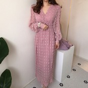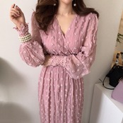 新品 Vネック♥カワイイ♥レース ロング ピンク ステッチ ⦿韓国 オルチャン K-pop アイドル ジャケット スーツ ワンピース カーディガン ニット フーディー トレーナー キャミソール スカート シャツ ブラウス 5A1402739 | K clothig adult