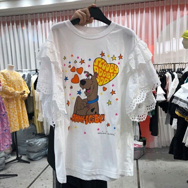 新品 レーススリーブプリント柄ラウンドネック スウィート ステッチ ⦿韓国 オルチャン K-pop アイドル ジャケット スーツ ワンピース カーディガン ニット フーディー トレーナー キャミソール スカート シャツ ブラウス 5B7644244