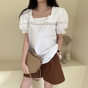 新品 レーススリーブシャツブラウスカジュアルパンツ ショートパンツ大人女子☆ ステッチ ⦿韓国 オルチャン K-pop アイドル ジャケット スーツ ワンピース カーディガン ニット フーディー トレーナー キャミソール スカート シャツ ブラウス 5A6795178