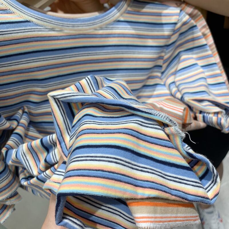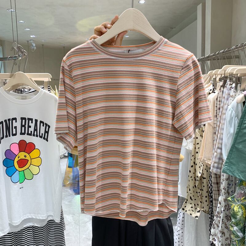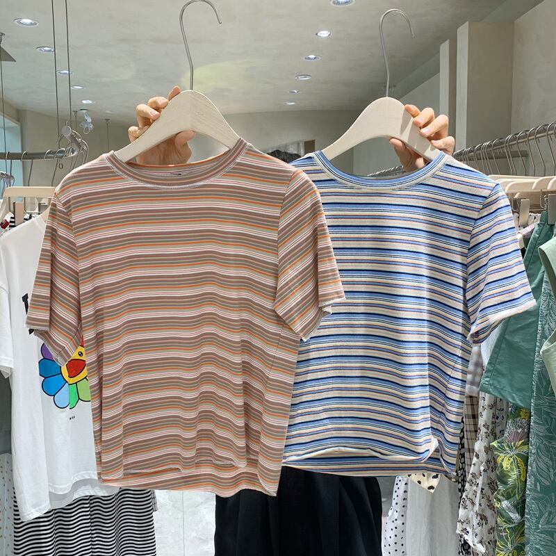 新品 ラウンドネックストライプTシャツ トップス ⦿韓国 オルチャン K-pop アイドル ジャケット スーツ ワンピース カーディガン ニット フーディー トレーナー キャミソール スカート シャツ ブラウス 5B5203445