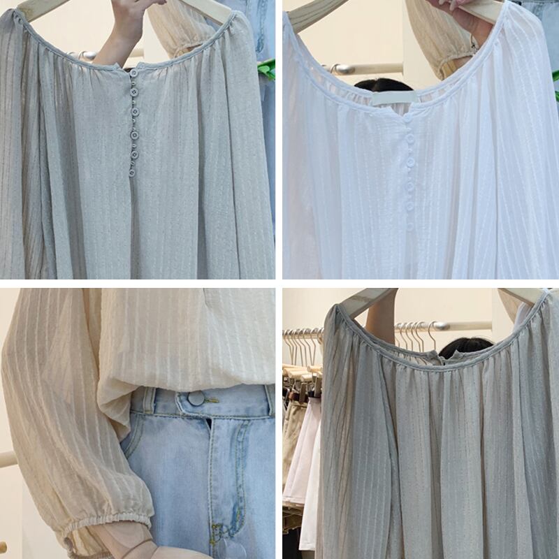 新品 ラウンドネックプルオーバー 長袖スリーブシャツブラウス ロング ⦿韓国 オルチャン K-pop アイドル ジャケット スーツ ワンピース カーディガン ニット フーディー トレーナー キャミソール スカート シャツ ブラウス 5B3070306