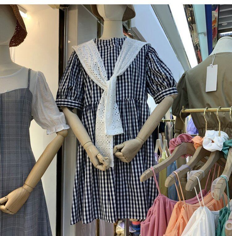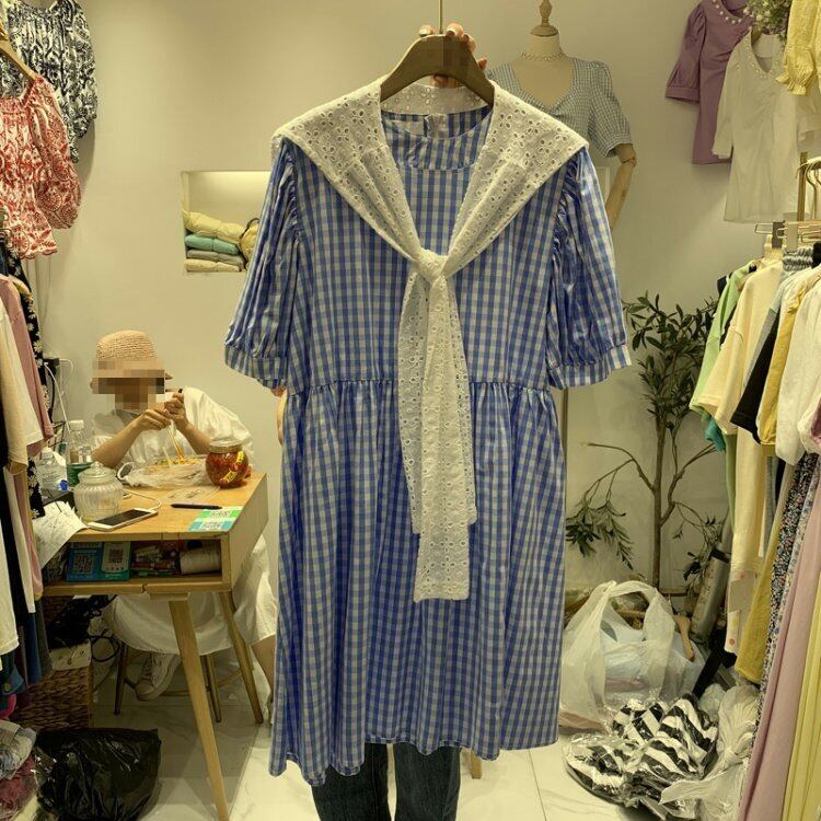 新品 サマーチェック柄スリーブ♥カワイイ♥ドレス ワンピースレース 夏物 ⦿韓国 オルチャン K-pop アイドル ジャケット スーツ ワンピース カーディガン ニット フーディー トレーナー キャミソール スカート シャツ ブラウス 5B0061193