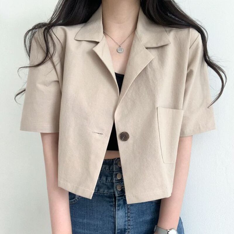 新品 ボタンポケットカジュアル♥カワイイ♥半袖スリーブジャケット ショート ⦿韓国 オルチャン K-pop アイドル ジャケット スーツ ワンピース カーディガン ニット フーディー トレーナー キャミソール スカート シャツ ブラウス 5A6843573