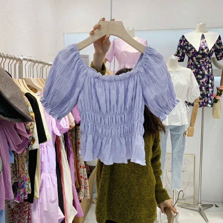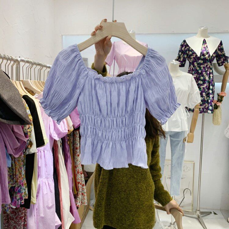 新品 ♡ストレッチ★プルオーバー ショートスリムシャツブラウス コットン エラスティック 伸縮 スウィート ⦿韓国 オルチャン K-pop アイドル ジャケット スーツ ワンピース カーディガン ニット フーディー トレーナー キャミソール スカート シャツ ブラウス 5B2492476 | K clothig adult