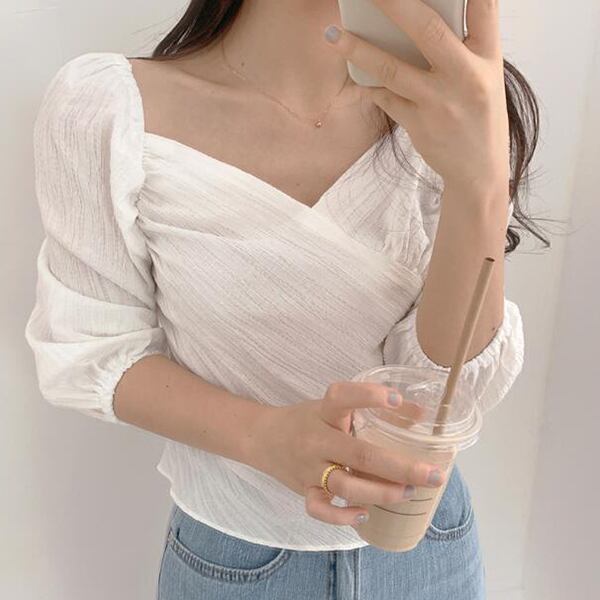 新品 スリムスリーブシャツブラウス エレガント スクウェア ⦿韓国 オルチャン K-pop アイドル ジャケット スーツ ワンピース カーディガン ニット フーディー トレーナー キャミソール スカート シャツ ブラウス 5A6281641 | K clothig adult