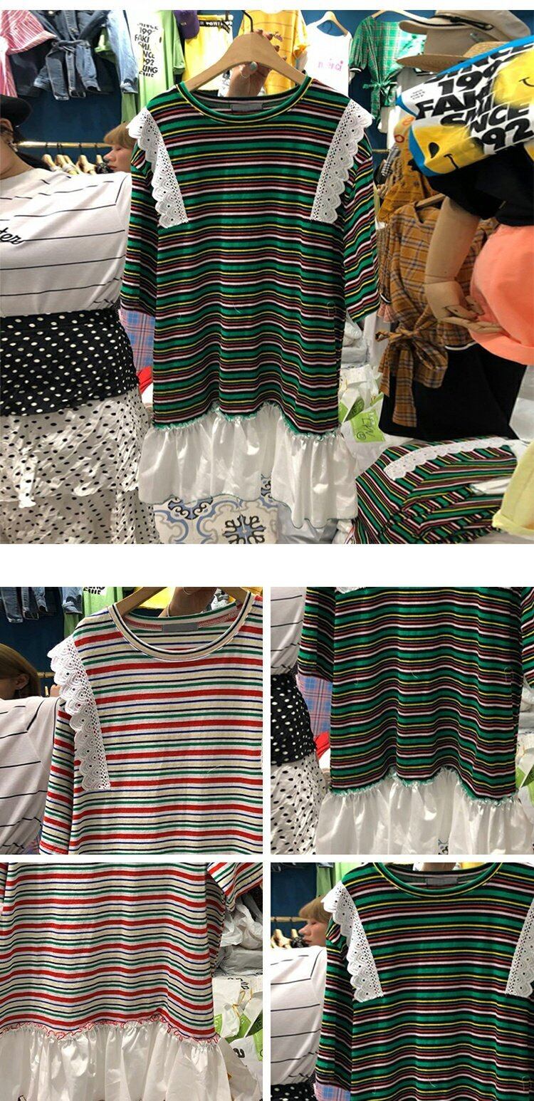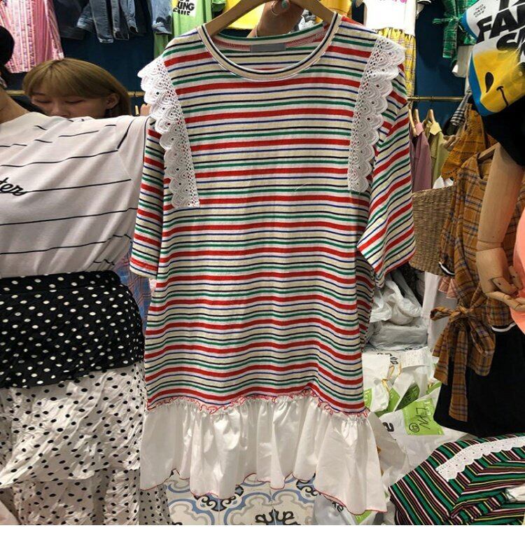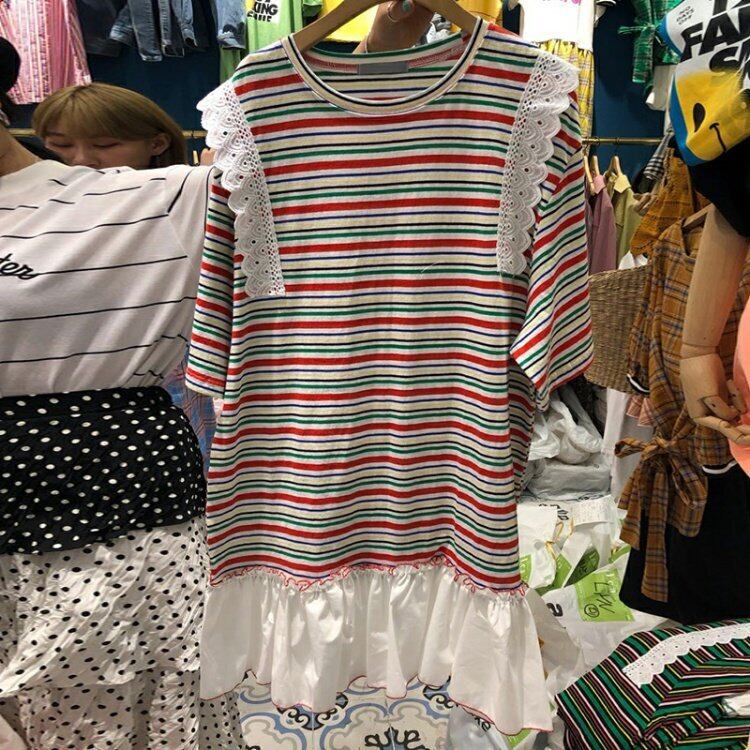 新品 レースストライプ膝丈 ひざ丈スリム スウィート ステッチ ⦿韓国 オルチャン K-pop アイドル ジャケット スーツ ワンピース カーディガン ニット フーディー トレーナー キャミソール スカート シャツ ブラウス 5B4641120
